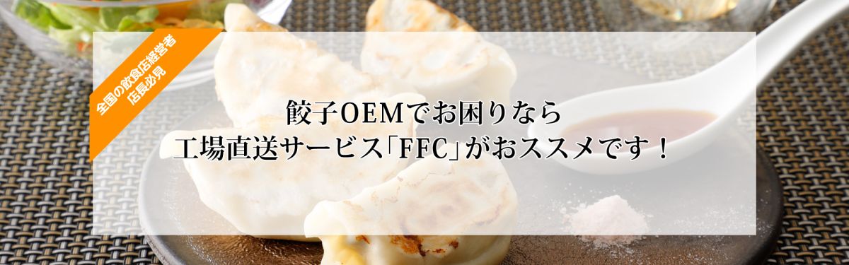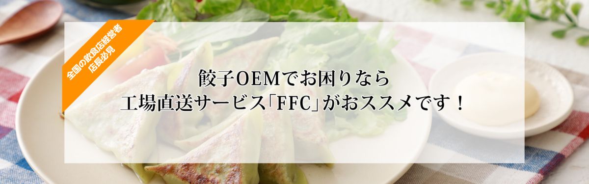 「FFC」を活用すれば、オリジナル餃子のOEM小ロット製造・商品保管は勿論、お客様への発送も委託できますので、通販・卸売り・テイクアウト等、餃子の拡販をスムースに開始する事ができます。